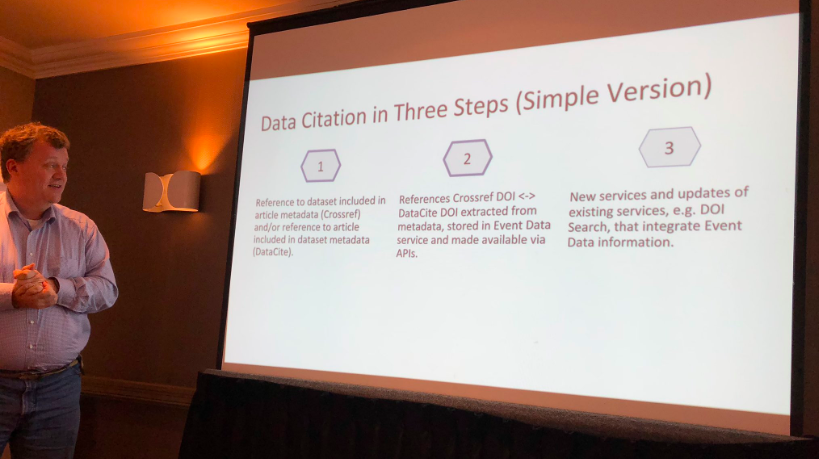 Adrian Burton (ARDC), co-chair of the Scholix working group, started the session with a very important message: Scholix is not a thing, nobody is building it, and it’s not a piece of infrastructure. Scholix is an information model that was developed to allow organizations to exchange information. In practice, this now means that, through Crossref, DataCite, and OpenAire, you can exchange information about article-data links. These links form the basis for data citations that can be obtained by querying the APIs made available by these organizations. However, think not what Scholix can do for you, but what you can do for Scholix. The system is only useful if organizations also contribute information about article-data links.