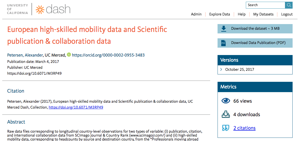 Dash: Example view of standardized usage metrics & citations