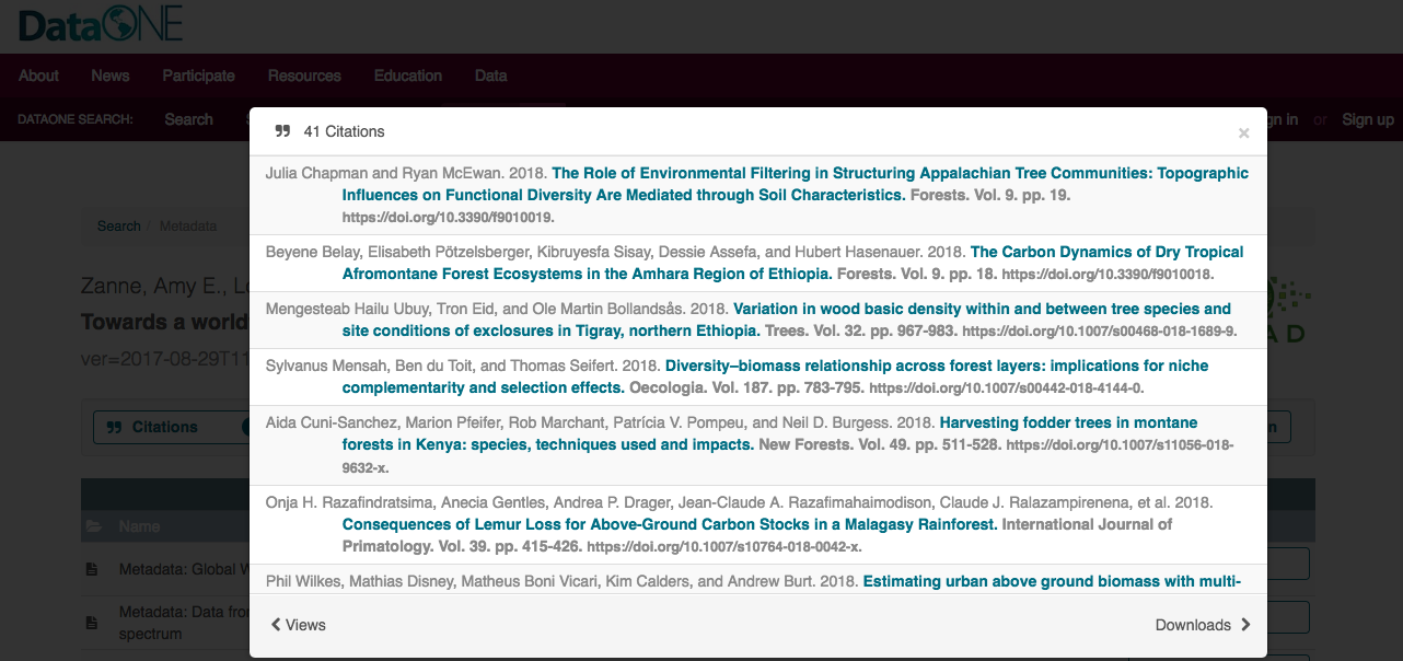 DataONE: Example from a Dryad dataset, all data citations displayed