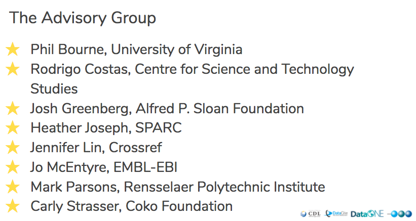 We are also pleased to report that we have launched an RDA Working Group “Data Usage Metrics” led by CDL’s Daniella Lowenberg, DataONE’s Dave Vieglais, and Scopus Product Manager Eleonora Presani. We will be at the RDA11 Berlin Meeting and would love for you to join the group and help us spread the word. The focus will be research data usage metrics implementation, adoption strategies, and future metrics to be considered.